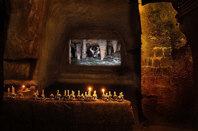 Добро пожаловать в катакомбы Неаполя! Сейчас мы находимся на глубине 30 метров под землей, температура здесь колеблется от 16 до 18 градусов Цельсия, уровень влажности составляет 70–80%. Эти пещеры были вырыты греческими колонистами, которые в IV веке до н.э. начали добывать здесь камень для постройки города над нами — Неаполиса, то есть «нового города».